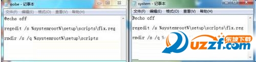 ② 打开记事本,输入以下内容,然后分别保存为oobe.cmd和system.cmd文件:
