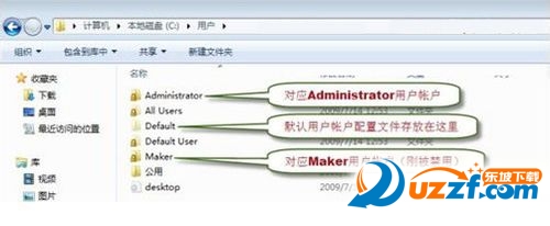 18、接下来,打开“计算机”,在打开系统盘的用户文件夹C:Users,看看刚被删除用户帐户的配置文件夹是否已经完全删除,如果在用户文件夹内还存在刚被删除用户帐户的配置文件夹,则将该文件夹删除。然后在“文件夹选项”里将“显示隐藏的文件和文件夹”设置还原为默认值。