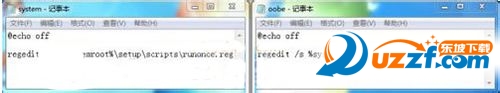 ⑥ 创建脚本文件。打开记事本,输入以下内容,然后分别保存为oobe.cmd和system.cmd文件: