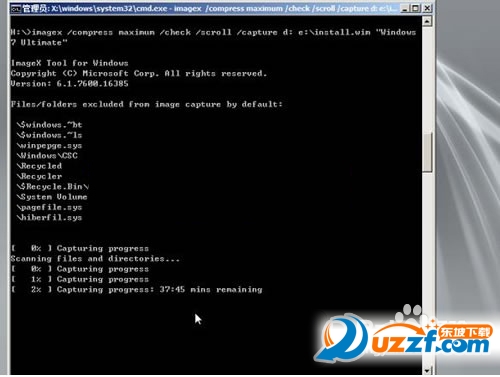 imagex /compress maximum /check /scroll /capture D: E:install.wim "Windows 7 Ultimate"