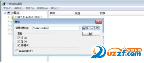 37、运行注册表编辑器,查找“Users<已经删除的用户名>”(如“UsersMaker”),竟然还找了很多“Users<已经删除的用户名>”的注册表项目。