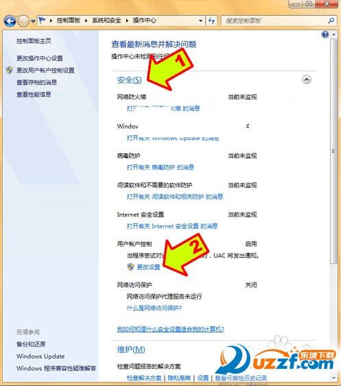 如果设置了禁用UAC和关闭错误报告,则设置成启用UAC和打开错误报告。