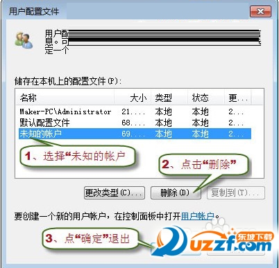 15、删除原来的用户帐户(即刚被禁用的用户帐户)及其配置文件夹。