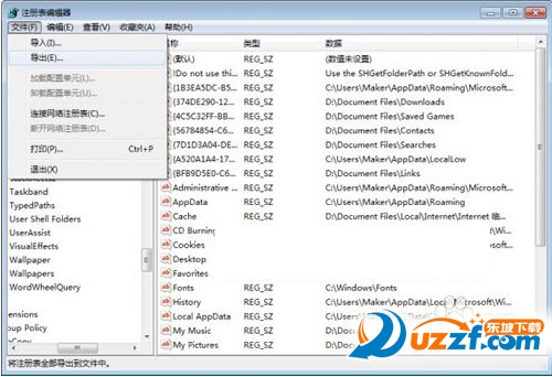 40、② 导出注册表文件。发现包含“Users<已经删除的用户名>”字段的注册表项目的时候,点击“文件”,再点击“导出”将该注册表项目导出到硬盘(保存为reg文件)。