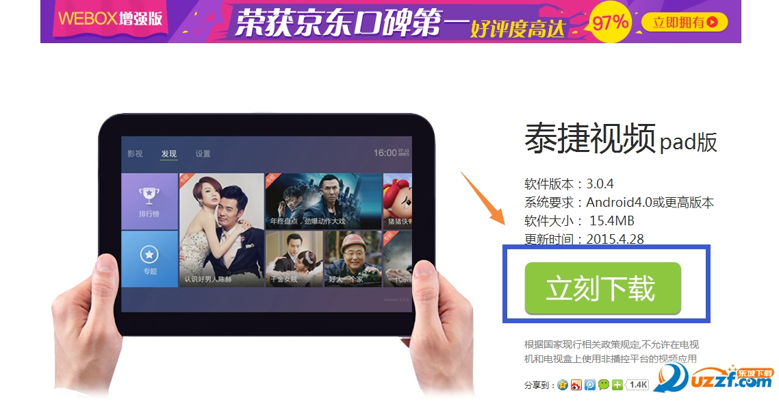 1、直接在泰捷官网下载泰捷视频apk,并拷贝到U盘上。