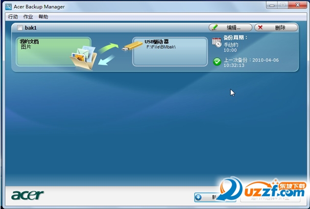 acer backup manager是acer的一个备份加管理的工具。Acer Backup Manager 软件是一款方便的备份资料到指定位置的软件,允许用户设定连续的作业去复制一个或多个文件/文件夹(备份原始资料)到另一个特定的位置(备份目的地)。备份作业是持续的,它们会连续地或按照用户定义时程定期地去更新备份文件夹的数据。您能设定每隔多少分钟,或者每天的指定时间有规律的去运行备份作业,或者每当备份的数据被改变的时候去运行。Acer Backup Manager 不仅仅能还原您的数据文件,而且还包括程序和操作系统。