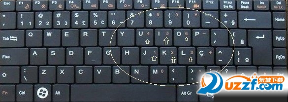 对于很多14英寸的笔记本,笔记本键盘都没有数字小键盘,但细细的朋友会发现,在笔记本的U 、I、O、P、J、K、L、;、M、。、/这些按键上会标有数字,如下图所示: