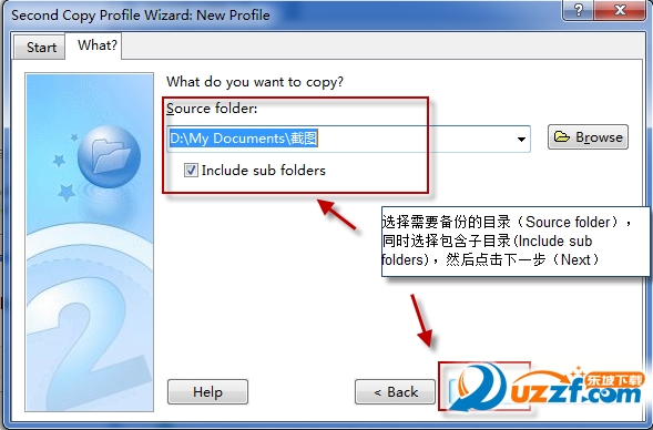 5.选择需要备份的目录,然后点击“Next"