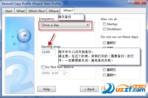 选择每天备份,开始时间是中午12点,(在这里请使用24小时制)