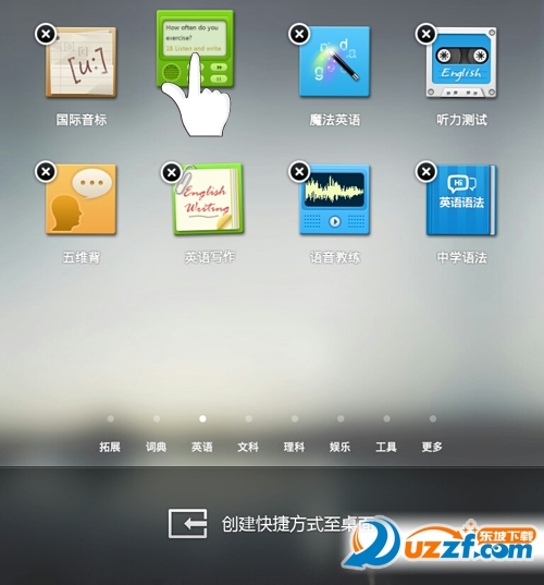 第四步:长按你需要拖到主屏上的应用,移至“创建快捷方式至桌面”区域。