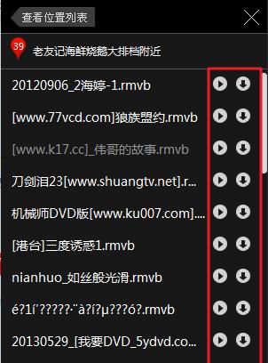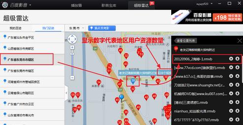 3、选中热门足迹中的某个地区,在地图上选择一个红旗小标记,标记上的数字表示该地区用户正在或者已经观看过的视频记录条数。点击小标记后可以看到视频资源,当然你可以可以在线观看或者下载到本地在慢慢欣赏。