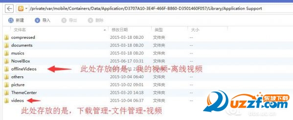 直接进文件夹目录,这个手机的文件目录 /private/var/mobile/Containers/Data/Application/D3707A10-3E4F-466F-B860-D3501460F057/Library/Application Support/offlineVideos D3707A10-3E4F-466F-B860-D3501460F057 这个目录可能每台手机不同请注意!