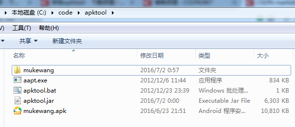 2. 解压得到3个文件:aapt.exe,apktool.bat,apktool.jar
