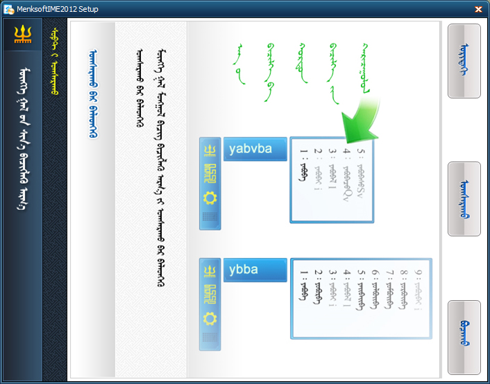 每个音节的首字母必输、其余字母可以省略。如输入蒙古文词
