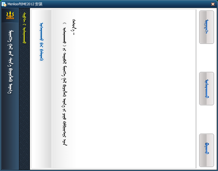 双击Menksoft Mongolian IME 2012 安装包出现如下界面。单击