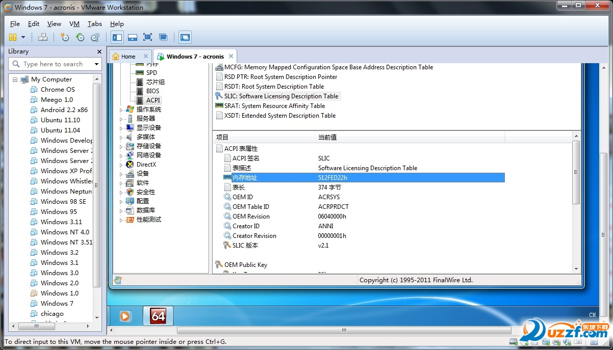 打开虚拟机,用aida64或者Everest查看一下SLIC的信息吧!