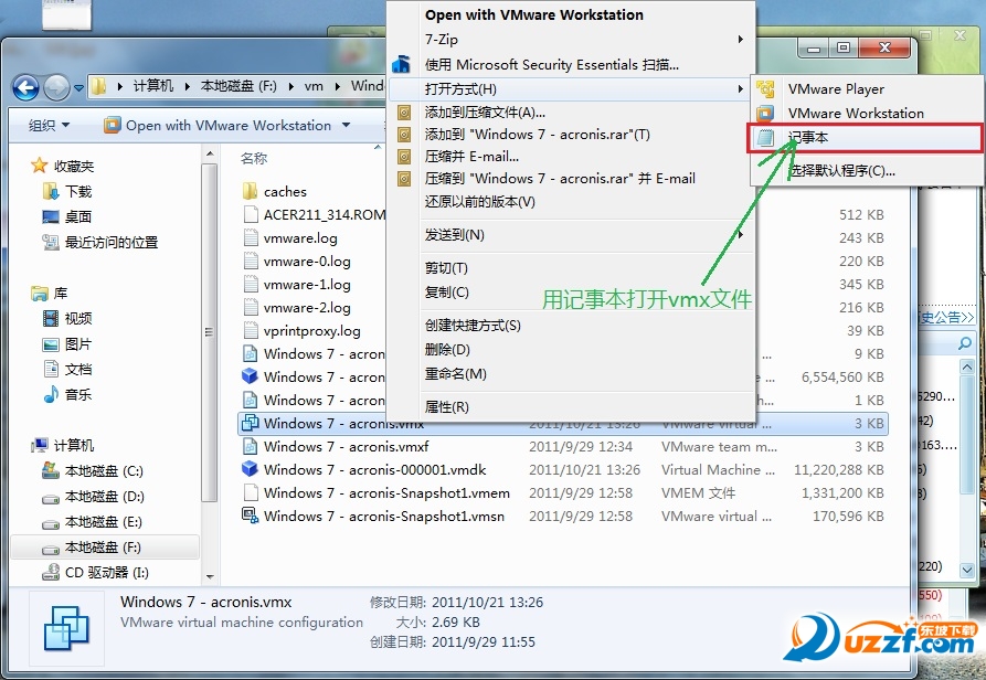 下面需要做的,就是更改虚拟机的vmx文件,用记事本打开vmx文件。