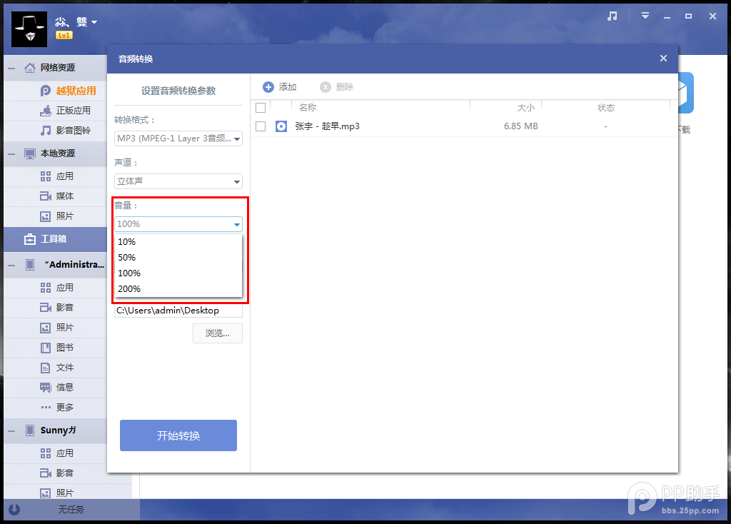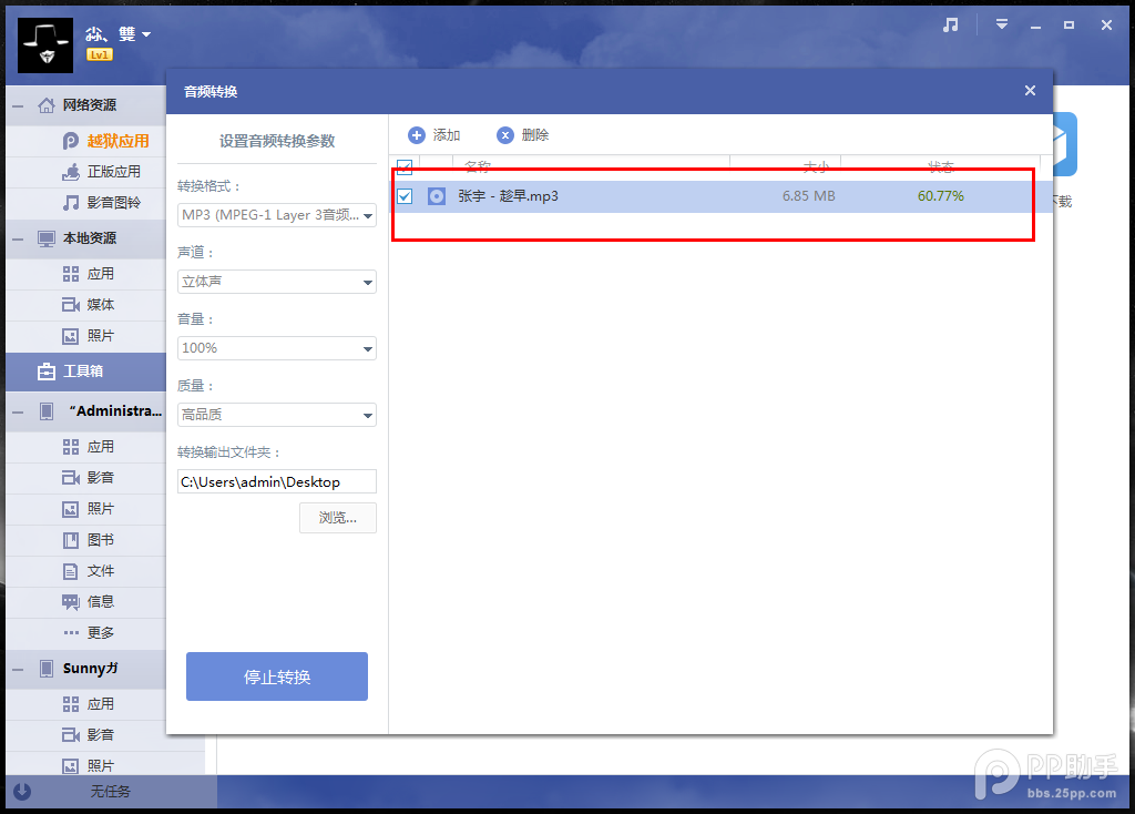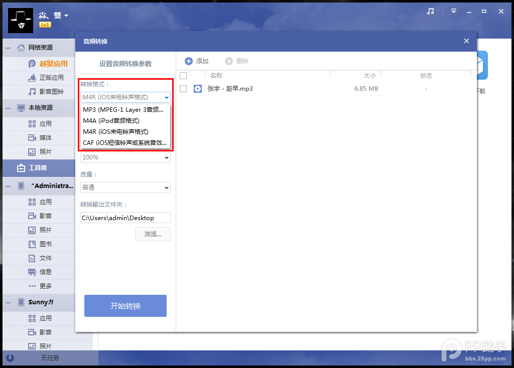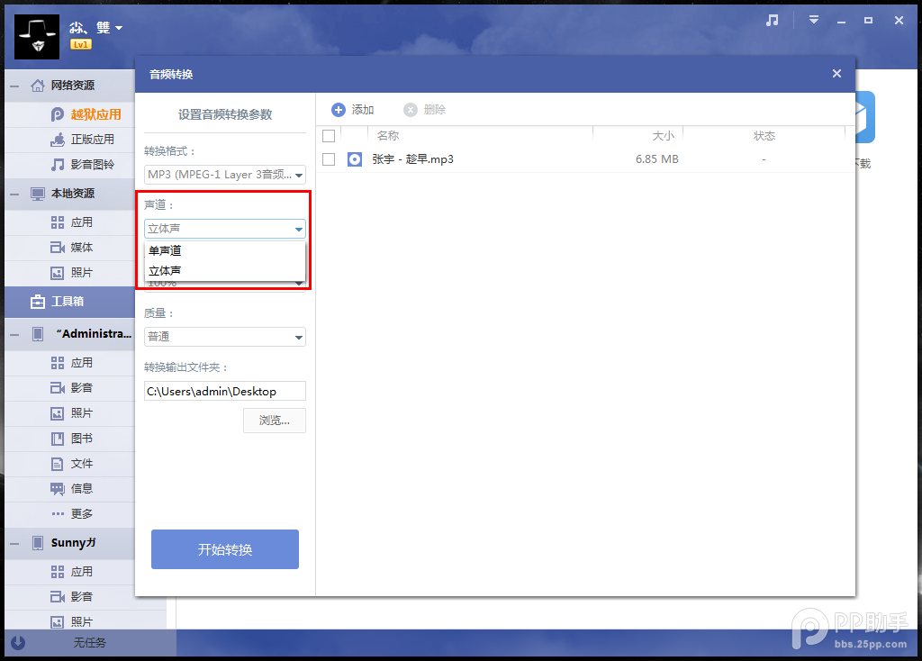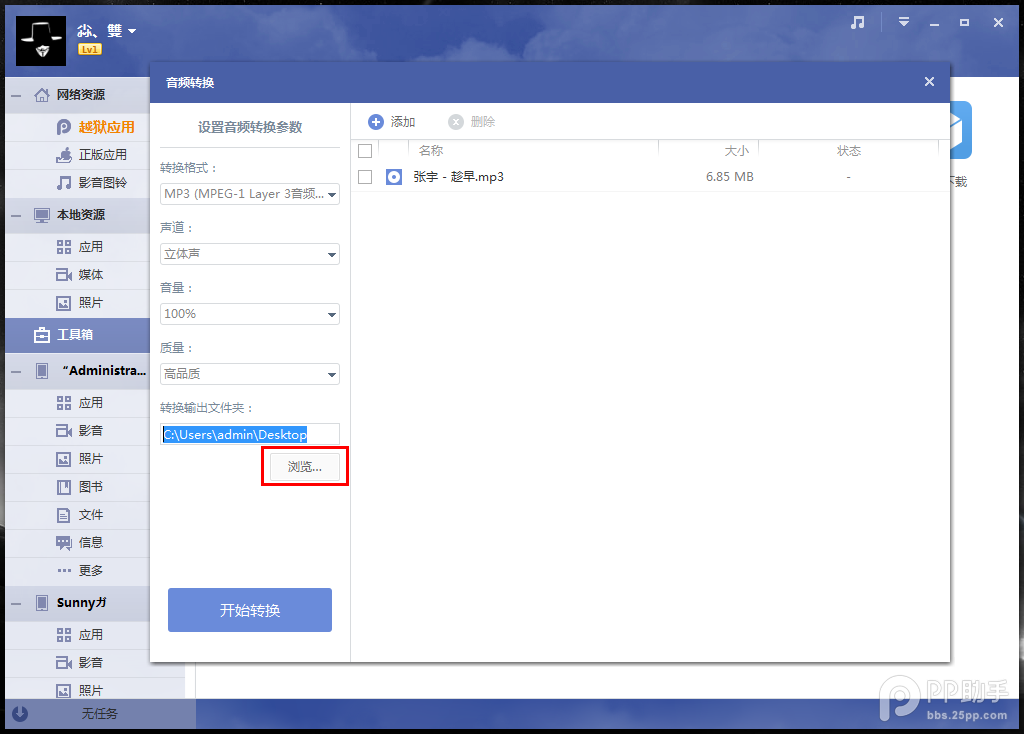 PP助手转换音频功能使用方法