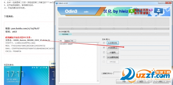 3 odin ap选入线刷三分rom,点开始等着重启(看好格式,7z是压缩包,下载解压格式是tar才是刷机包本身)