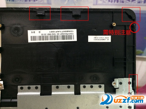 注:一定要细心,再次强调不要用蛮力,否则后果自负,值得注意的地方有两处,分别为下面两个角,内卡口特别容易断裂,建议从四个角分别撬开,这样不容易断裂卡口,另外可根据个人电脑相应情况下手,下图会给出相应的内部卡扣图。