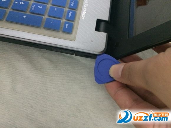 A、从键盘左侧下面开始拆,打开一条小缝,开的时候要用巧劲,像拧钥匙一样,先往上顺着撬开
