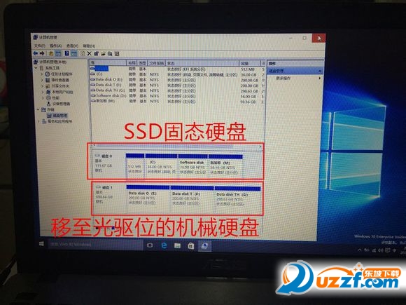 插入改造后的光驱托架,螺丝切记不要安装,上电开机,注意装SSD后建议把后盖板卡住,以防万一,开机后效果图