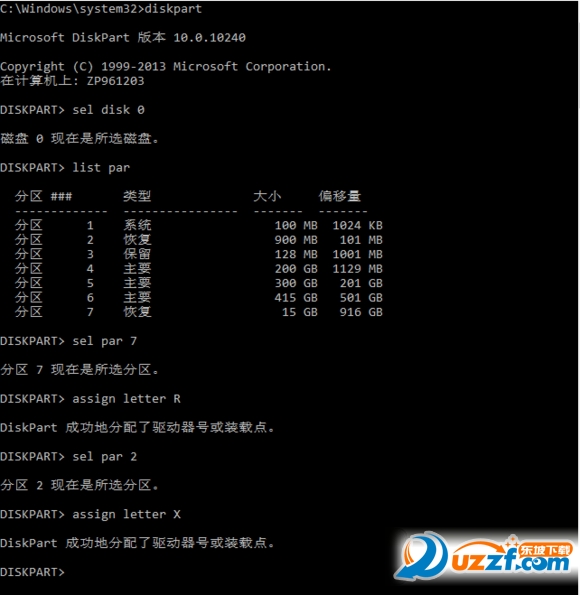 7.输入assign letter R 并且回车(给所选择的分区添加驱动器号或者说盘符,以便可以在资源管理器中对分区中的内容进行操作,其中R这个字母可以为其他的没有使用过的盘符)