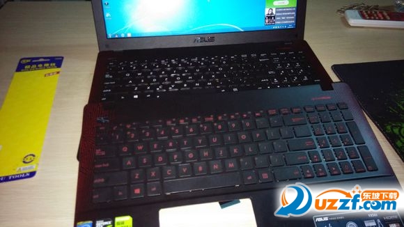 华硕FX50JK电脑玩游戏比较给力,但是有个缺点,键盘由于是红色字体,所以在某些灯光下打字看不清楚,故此需更换键盘一用。