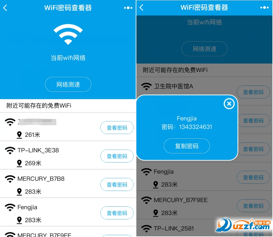 最后就可以看见附近WIFI名称-后面有对应的密码-点击查看即可。