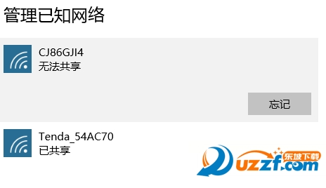 在需要管理的无线网络上单击,就会出现“共享”和“忘记”选项。如果要删除无线网络,就选择“忘记”。