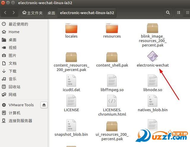 双击打开解压后的文件夹,找到electronic-wechat这个文件,双击运行或者右键选择运行,