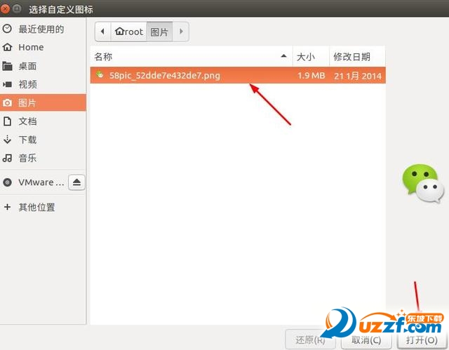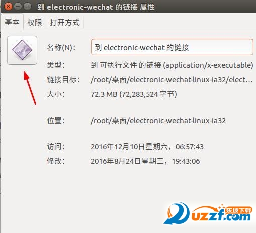这个是需要扫描二维码登录的,用的是网页版的接口,拿出手机扫描二维码就可以登录了,UI还是很好的。还是再这个文件上右键选择创建链接,类似于Windows下的快捷方式,创建完成后,在新生成的图标上右击,选择属性,在图标那个位置单击一下,选择一个图标(要提前下载好),这样替换图标完成了。