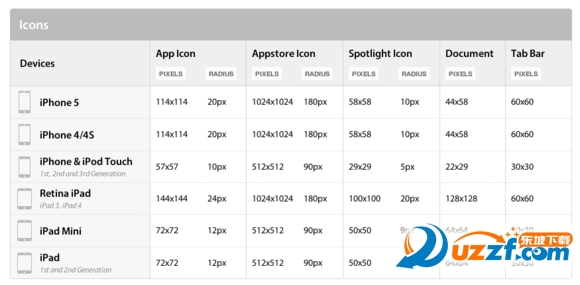 图标要自己截取1:1比例的图片 分辨率要大于设备原图标的分辨率 以上四种图标的分辨率见图