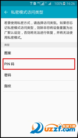 6. 点击【关】右侧滑块,然后选择一种私密模式访问类型,这里以点击【PIN码】为例。