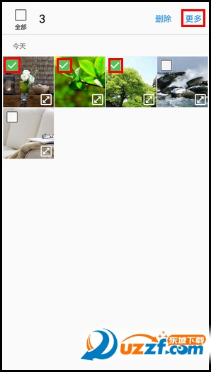 4.选择需要隐藏的照片后,点击屏幕右上角【更多】。