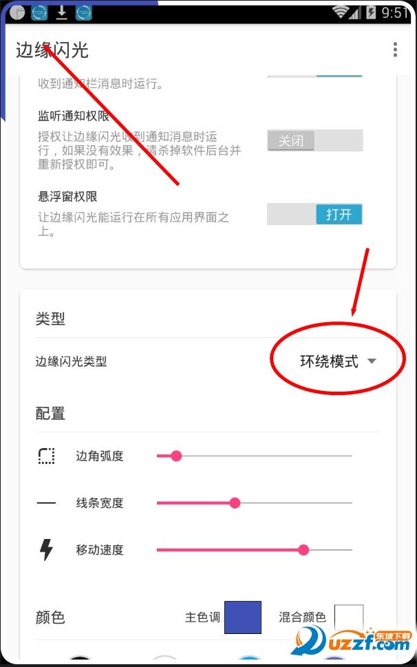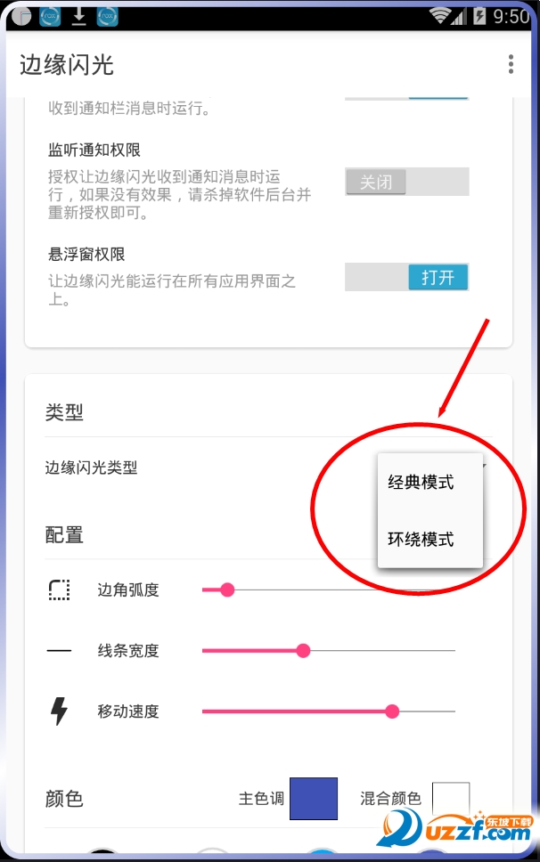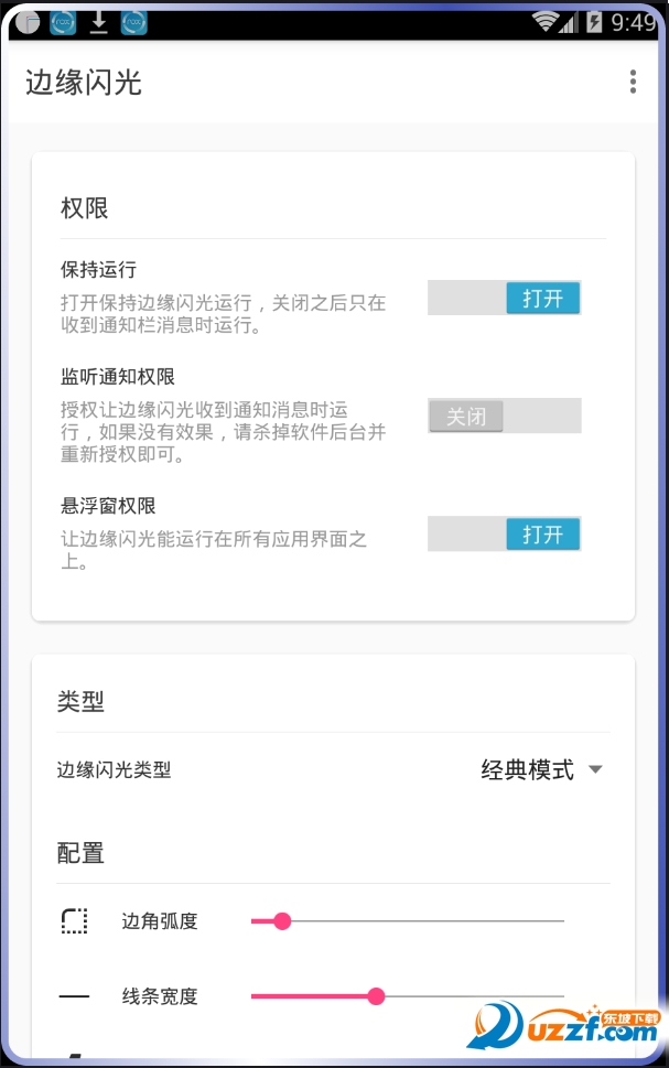 4、党这个应用启动后,你的手机的边缘将会在收到来电或短信后播放非常美观的屏幕边缘上的动画