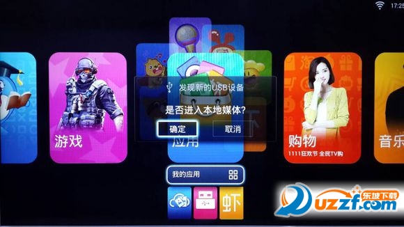 插入U盘,出现提示信息,点击确定进入本地媒体。