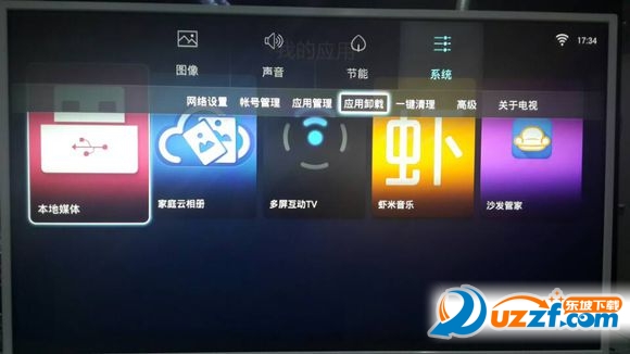 如果要卸载应用,按遥控器上的菜单键,呼出菜单—系统—应用卸载,在
