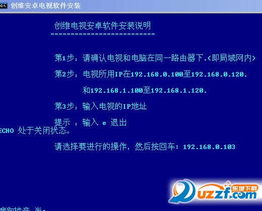 E:在打开的软件界面输入电视的IP地址.然后回车.软件会连接上电视.(具体连接上没有软件界面有详细说明)