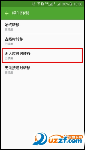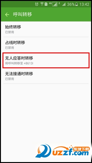 7.选择使用呼叫转移的类型,这里以【无人应答时转移】为例。