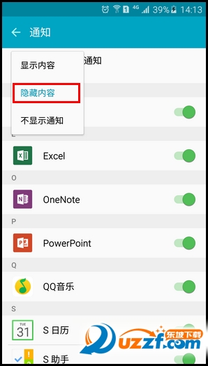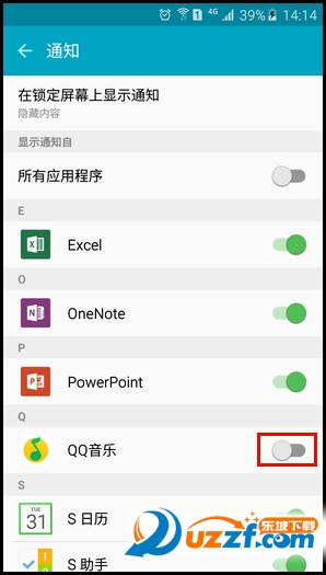 7.已隐藏锁定屏幕上通知内容。在屏幕锁定的情况下,应用程序通知内容将不会直接显示在屏幕上。另外也可单个隐藏某个程序的通知内容,例如【QQ音乐】。