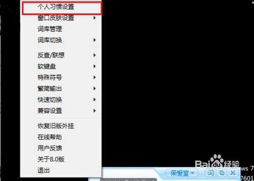 2、鼠标点击一下右键,选择{个人习惯设置}