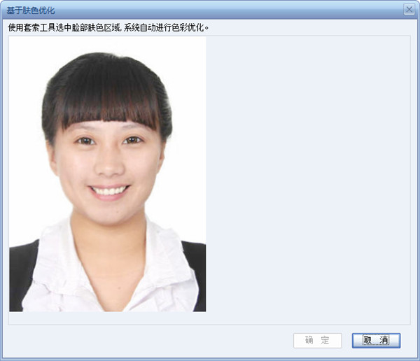 接下来,我们选择色彩优化——基于肤色修正,就会弹出一个对话框,在这个对话框中我们按照提示选中需要美白的区域系统即可自动对其修正,轻轻松松就解决了我的肤色暗问题,证件照也顺眼多啦。