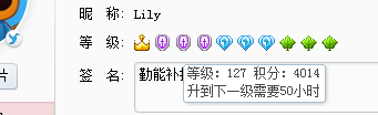 鼠标移入个人头像也可以查看自己和好友的等级、积分情况。