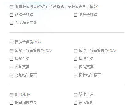 频道OW(紫马)可针对频道管理进行权限设置如下:
