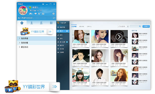 YY精彩世界汇集海量直播,娱乐、游戏、教育,点击可快速观看视频节目。