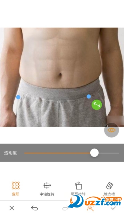 3、然后选择一款自己喜欢的腹肌,双手调节大小和方向,还可以设置透明度