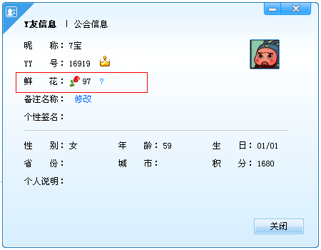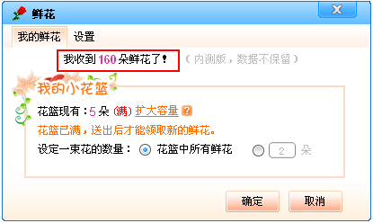 从鲜花窗口中,可以看到自己收到的鲜花数量: