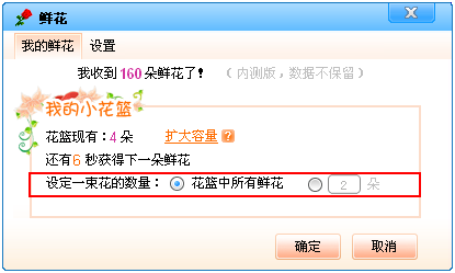 当等级达到16级时,可以送出一束花,在我的鲜花里,可以设置一束花的数量: