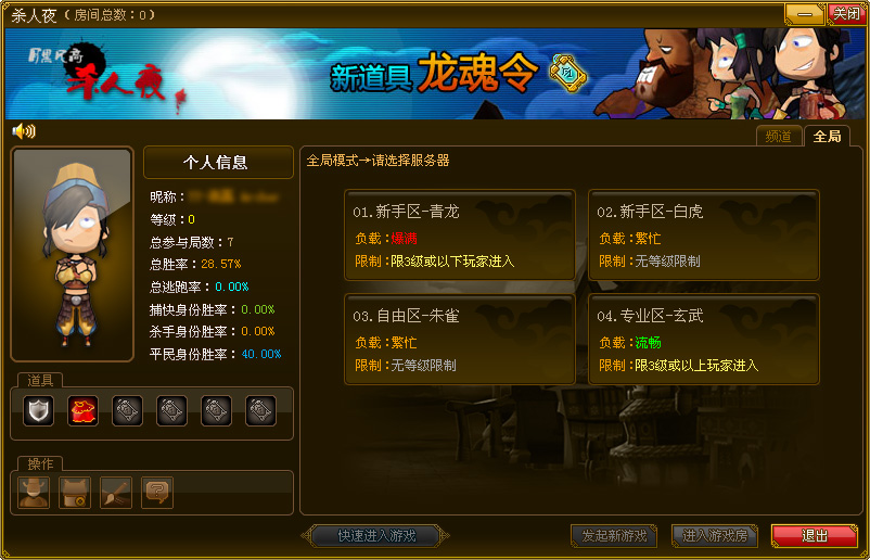 点击游戏图标,就会出现游戏房间列表,如果默认模式为频道模式:
